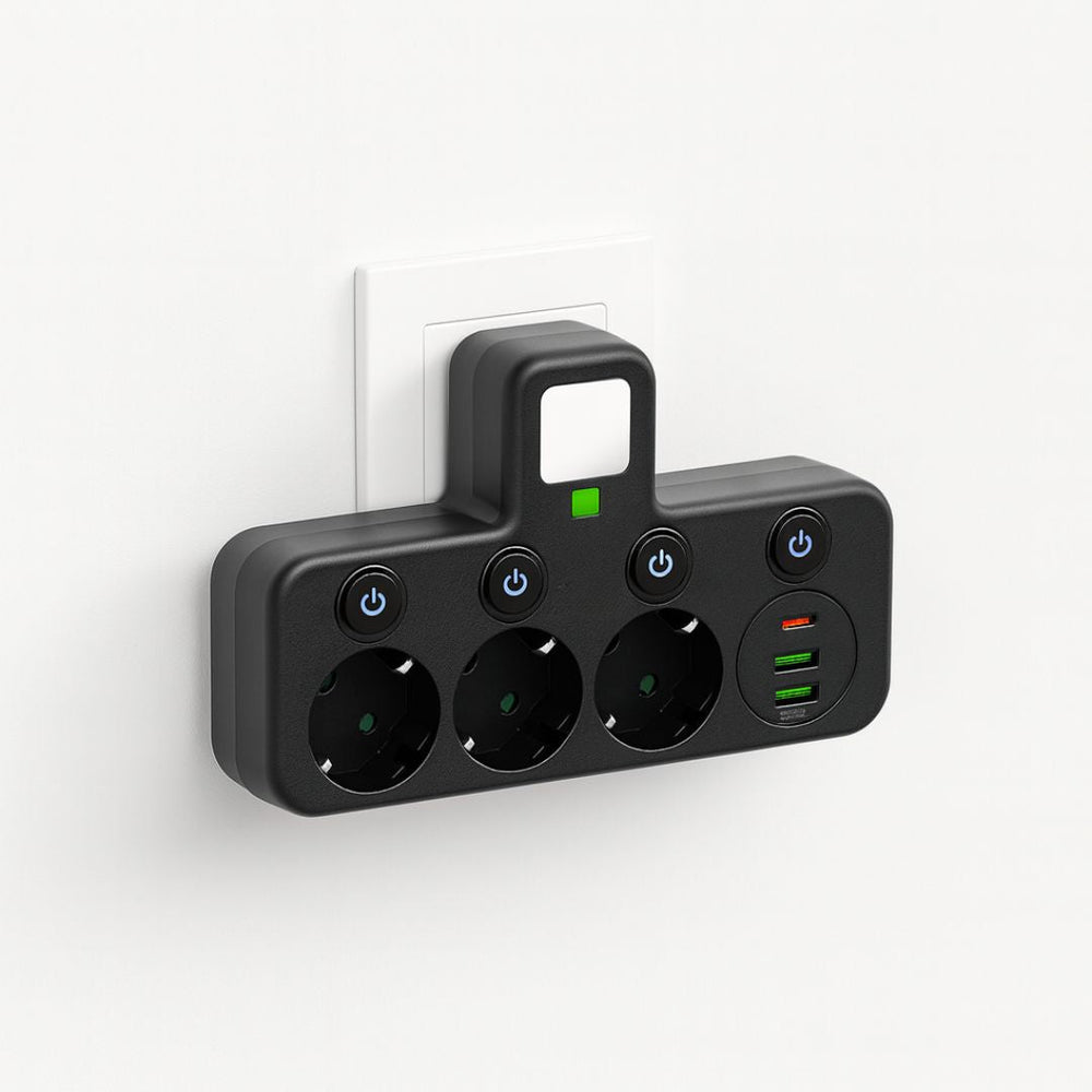 Steckdosenleiste mit 3 Steckdose | Mehrfachsteckdose mit USB & Schalter | PowerGrid