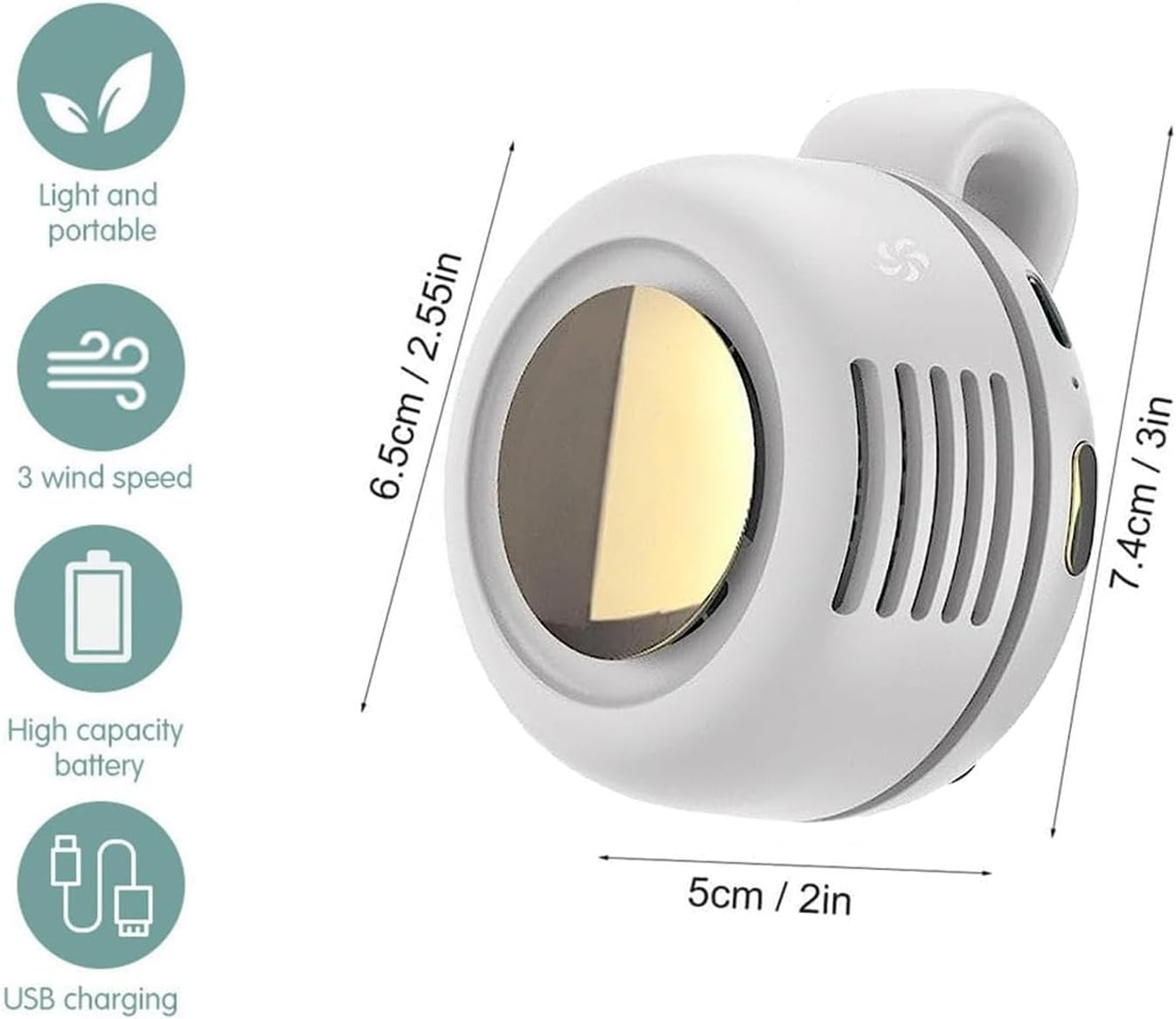 Mini-Größe: Mini-Ventilator, nur 2,91 x 2,55 x 1,96 Zoll, lässt sich leicht in die Tasche stecken und überallhin mitnehmen, geeignet für draußen, zum Einkaufen, Camping, auf Reisen, zu Hause und im Büro. Sie können den einfach zu installierenden Duftpads auch Ihren Lieblingsduft hinzufügen und eine erfrischende kühle Brise von Ihrem Mini-Ventilator genießen.