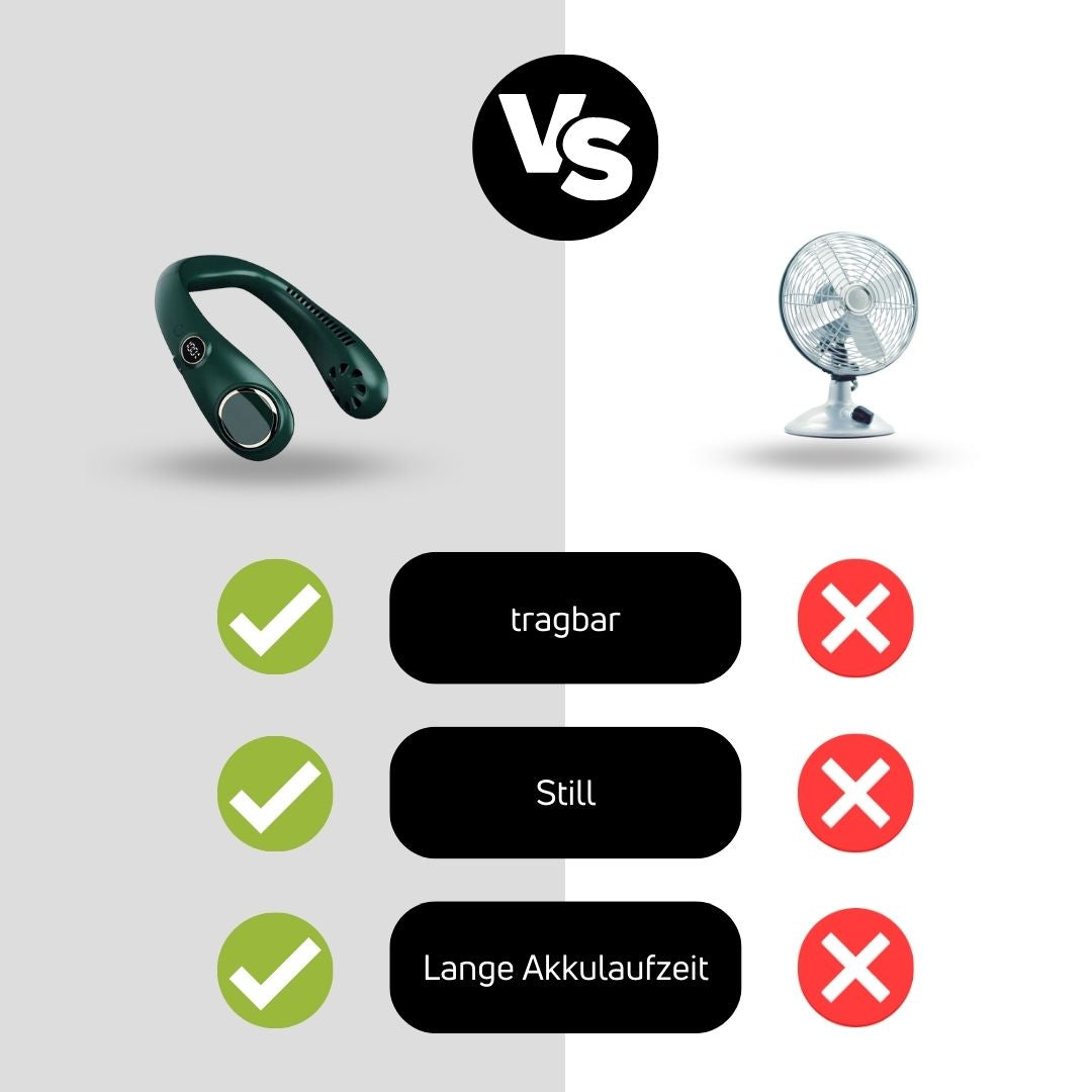 ✔️ Erstaunliche Kühlwirkung für sofortige Erleichterung ✔️ Einfache Bedienung mit speziellen Tasten für verschiedene Funktionen ✔️ Komfort und Tragbarkeit für den Einsatz unterwegsthe-go use ✔️ Akku mit 4-16 Stunden Laufzeit ✔️ Natürlicher Luftstrom für mehr Komfort