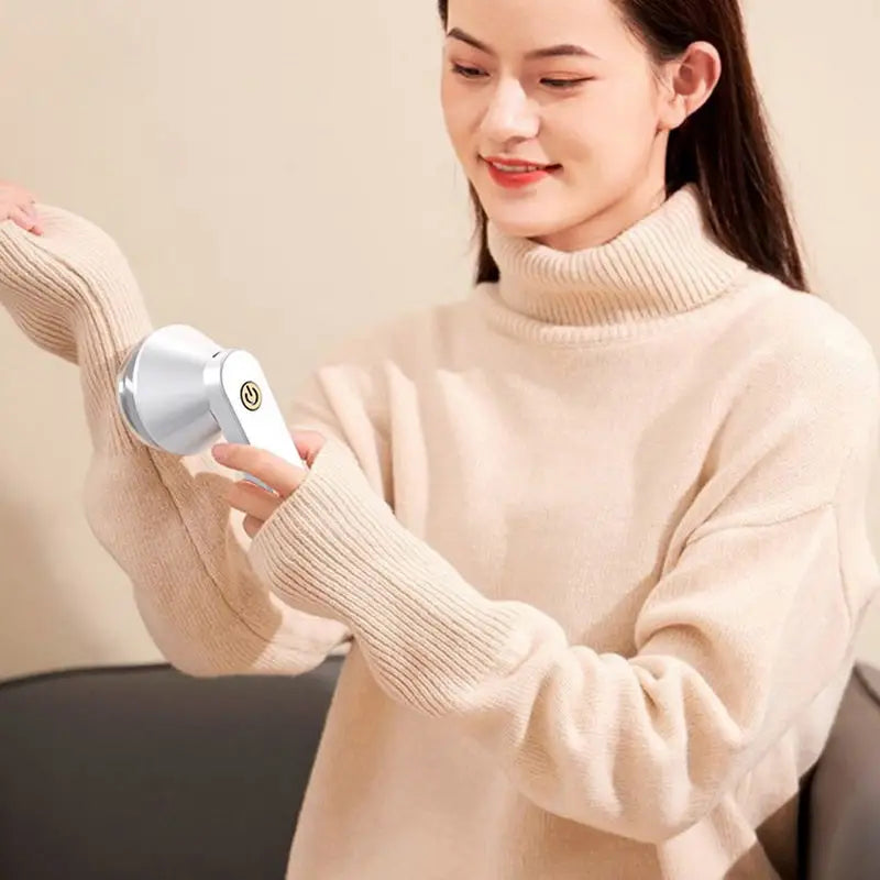 Der revolutionäre Stoffrasierer entfernt mit einer integrierten rotierenden Klinge sofort überschüssige Fusseln von Ihrer Kleidung, Sofas, Teppichen und vielem mehr und sammelt diese.
