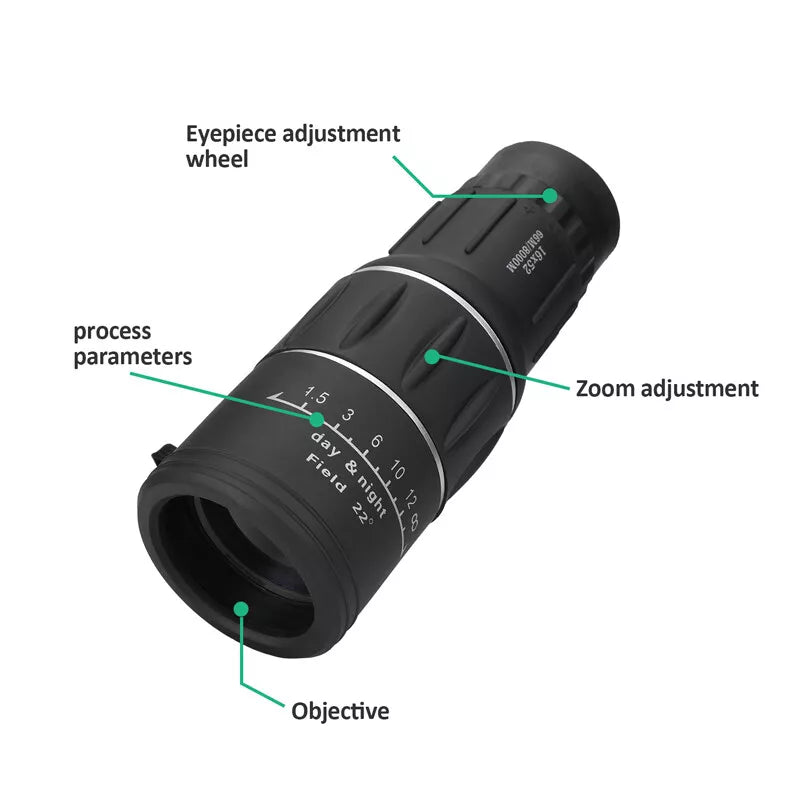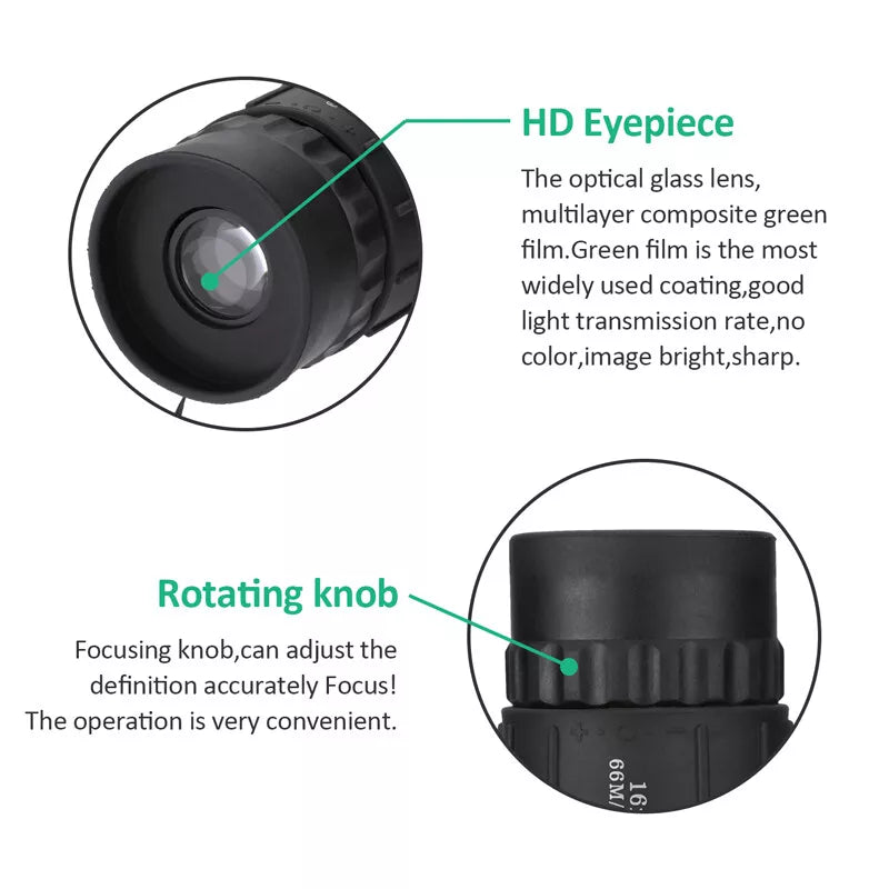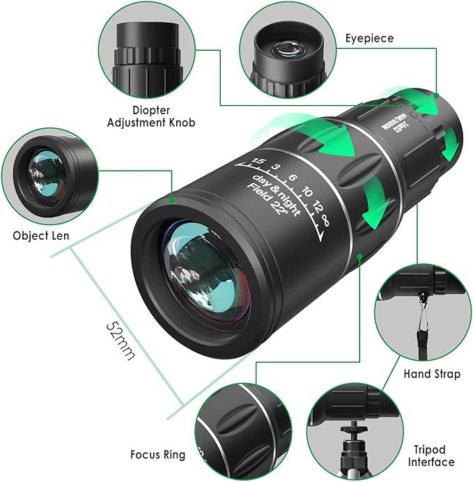 16X52 66m/8000m BAK4 Monocular Telescope with BAK4 Prism and FMC Lens for Watching Hunting Hiking Camping Travel Wildlife