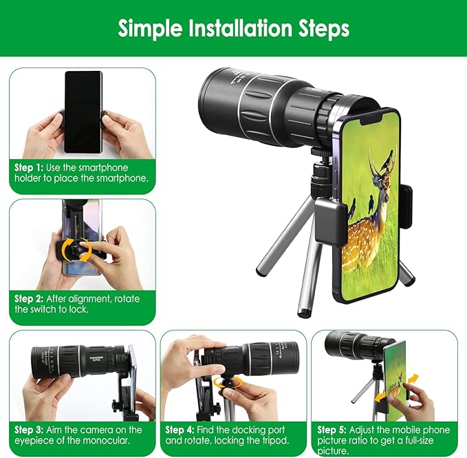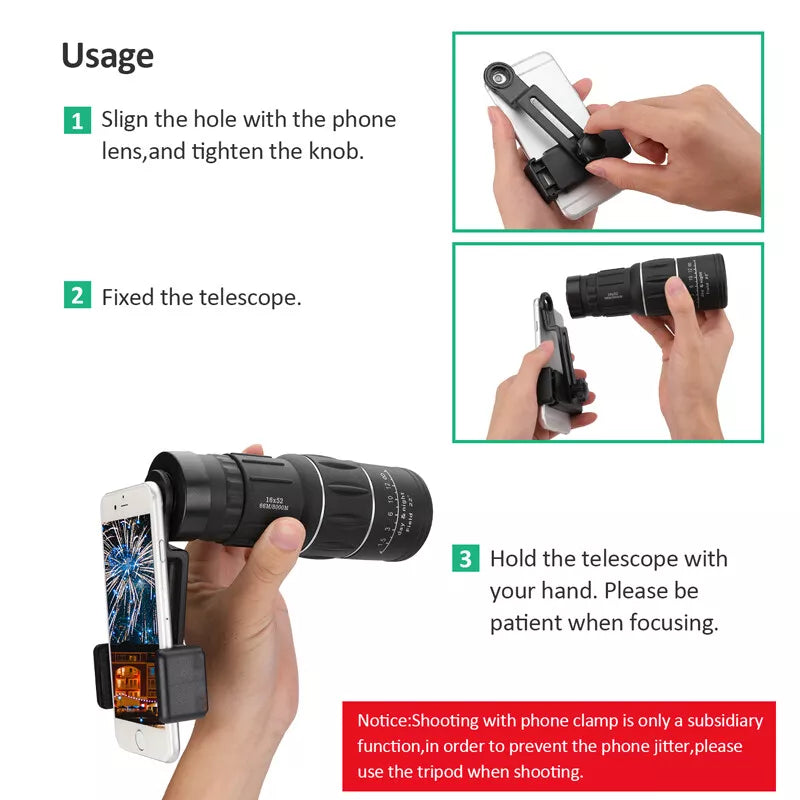 16x52 Phone Camera Zoom Lens Monocular Telescope HD Hiking Hunting Phone Holder - Picture 10 of 11