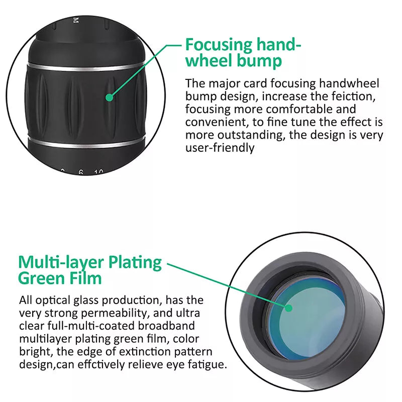 ✔ Vielseitige Einsatzmöglichkeiten – Ob zur Naturbeobachtung, für Sportereignisse oder zur astronomischen Beobachtung, dieses Teleskop ist für viele Interessen geeignet und bietet eine Mehrzwecklösung für Outdoor- und Indoor-Aktivitäten.