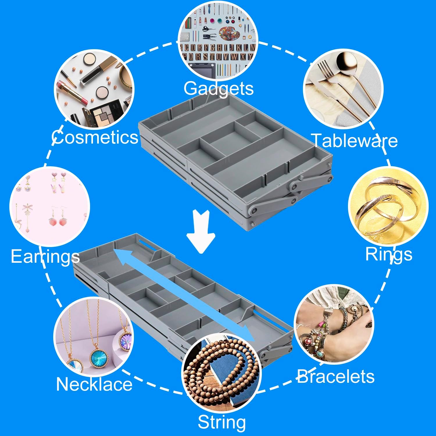 Suchen Sie nach einer Möglichkeit, Ihre Schubladen optimal zu nutzen? Der Organix™ ist die Lösung! Mit seinen erweiterbaren und verstellbaren Fächern können Sie Gegenstände jeder Größe – von Schmuck bis hin zu Büroutensilien – mühelos organisieren. Diese platzsparende Lösung bringt Ordnung in jede Schublade und hält alles griffbereit. Machen Sie Ihre Schubladen mit diesem einfachen, aber effektiven Organizer intelligenter und effizienter!