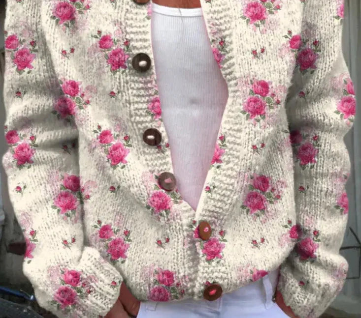 Viktorija™ - Vintage Strickjacke mit Blumen kunst druck