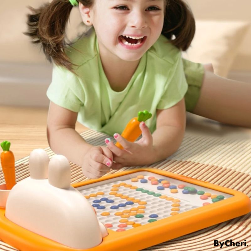 Diese Tafel ermöglicht es Kindern, mit einem magnetischen Stift zu zeichnen und dabei bunte Perlen zu verwenden. Während sie ihre Fantasie entfalten, lernen sie Farben und Formen kennen. Die benutzerfreundliche Oberfläche sorgt dafür, dass jedes Kind mühelos kreativ sein kann. Fügen Sie dazu die Tatsache hinzu, dass es auch die Feinmotorik stärkt, und Sie haben ein rundum durchdachtes Produkt.