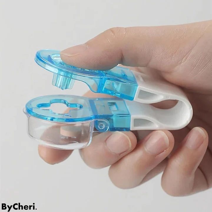 Benutzerfreundlich Der Vorgang ist ganz einfach. Positionieren Sie die Schneidevorrichtung direkt über der zu entnehmenden Pille, üben Sie leichten Druck aus und drücken Sie sie nach unten, so dass die Pille leicht in den freien Raum fällt.