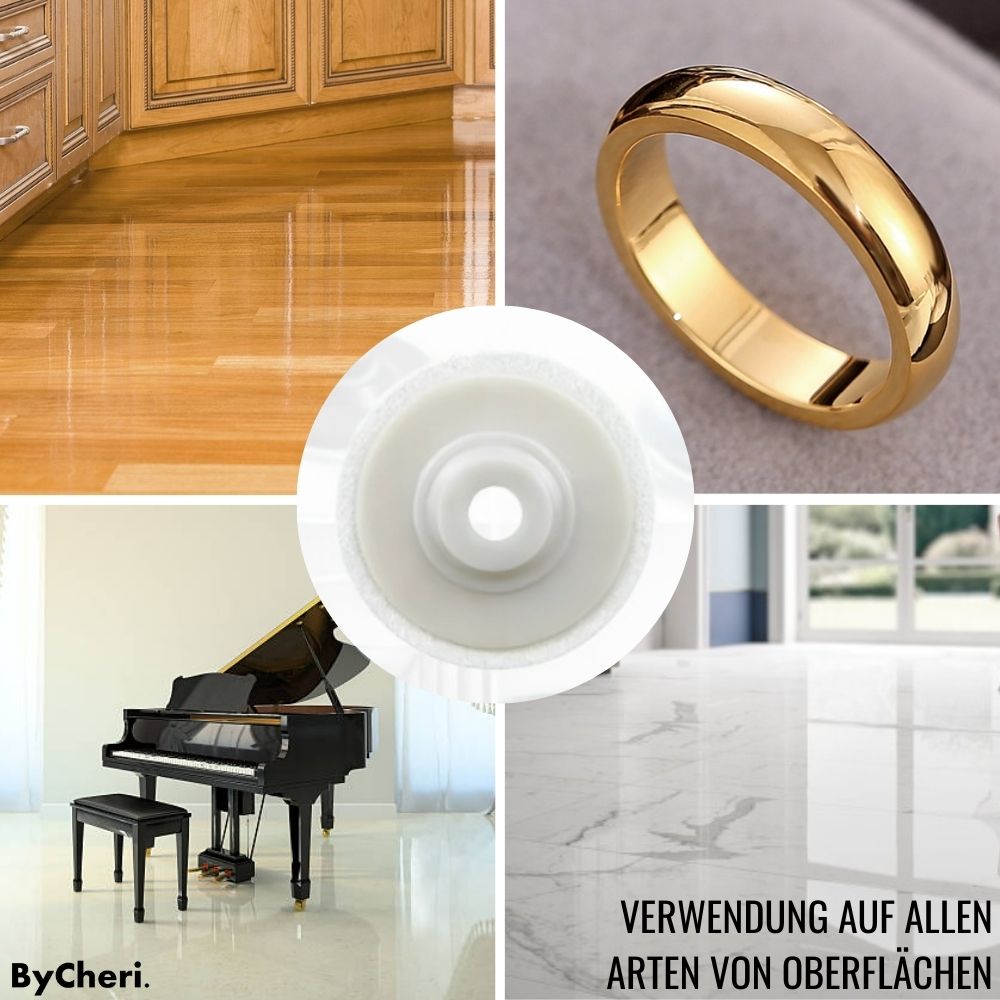 Entdecken Sie die bezaubernde Kraft von WoolShine™, während es mühelos Ihre gewöhnliche Möbel in ein luxuriöses Meisterwerk verwandelt. Hergestellt aus hochwertigem Wollfilz, löscht seine magische Zusammensetzung nahtlos Beulen, Wirbelmarken und Flecken von jeder Oberfläche, und hinterlässt ein makelloses und elegantes Finish. Heben Sie die Schönheit Ihrer Möbel mit WoolShine™ auf ein neues Niveau und umarmen Sie den Zauber eines verfeinerten und polierten Wohnraums.
