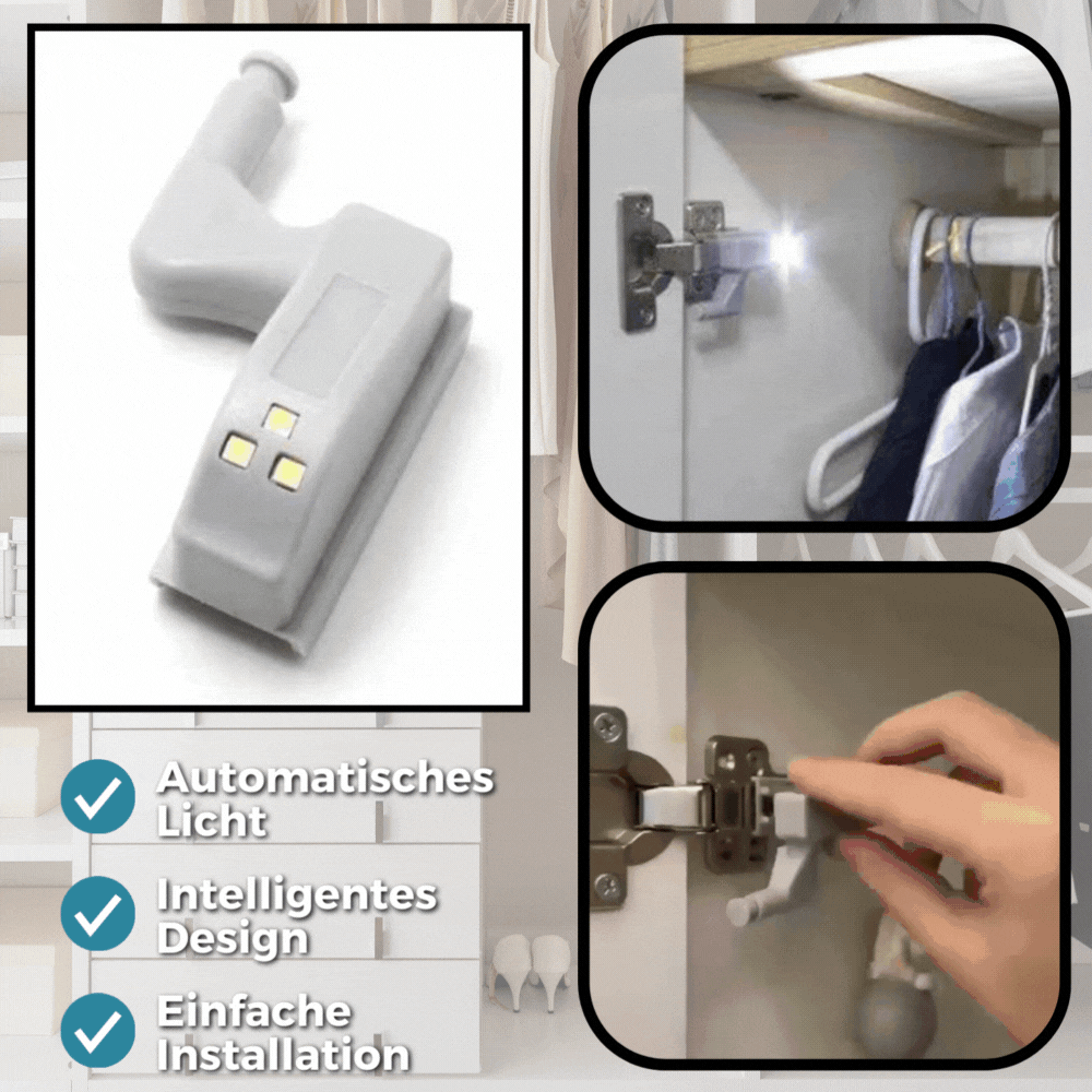 SchrankLights sind ideal für Schlafzimmer, Küche, Kleiderschrank, Abstellkammer, Werkstatt, Keller, Garage und jeden anderen Ort, an dem Sie zusätzliches Licht benötigen. Einfach zu installieren, bietet es perfekte Beleuchtung für Ihre Sicherheit und Komfort.